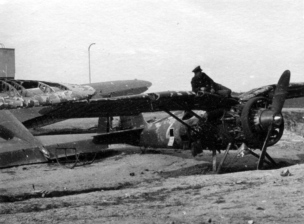 miejsce. PZL P-11c znajduje się tu w towarzystwie małaszewickich „Łosi”, a w tle widać I Grupę Budynków. Przemieszczenie go w te konkretną lokalizację nie było przypadkowe. Niemcy wykorzystali zebrane tam maszyny na potrzeby kręcenia swojego filmu propagandowego o kampanii wrześniowej Kampfgeschwader Lützow (premiera miała miejsce w lutym 1941r,). Wszystkie zostały spalone w trakcie realizacji filmu.